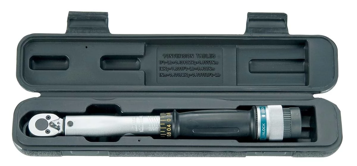 Momentnøglen passer til 1/4″ toppe, men der medfølger adapter til 3/8″ toppe.