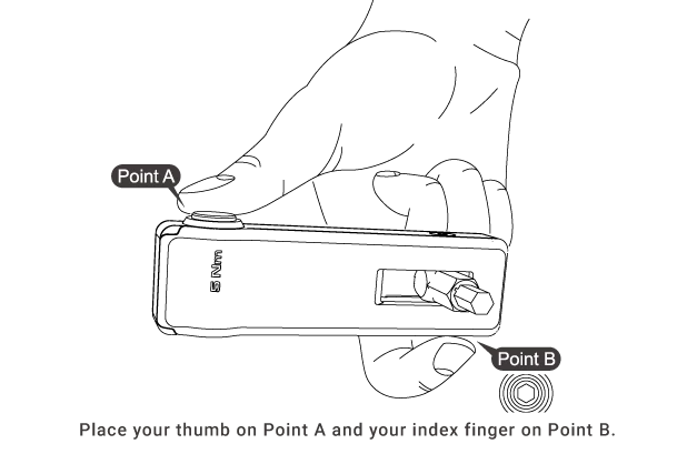 Momentspændingen opnås ved at placere tommelfingeren på knappen øverst på værktøjet og spænde ved at trykke på den.