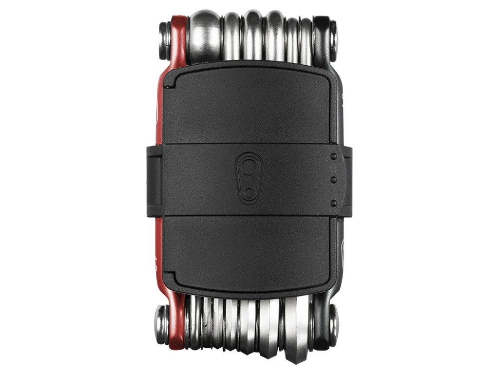 Multiværktøj fra Crankbrothers med 13 forskellige stykker værktøj, inklusiv et integreret dæk plug værktøj.