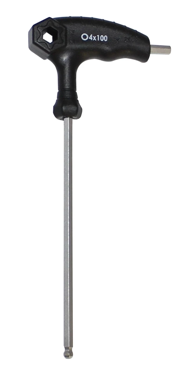 Størrelsen er 4 mm. og der er et kuglehoved i den ene ende.