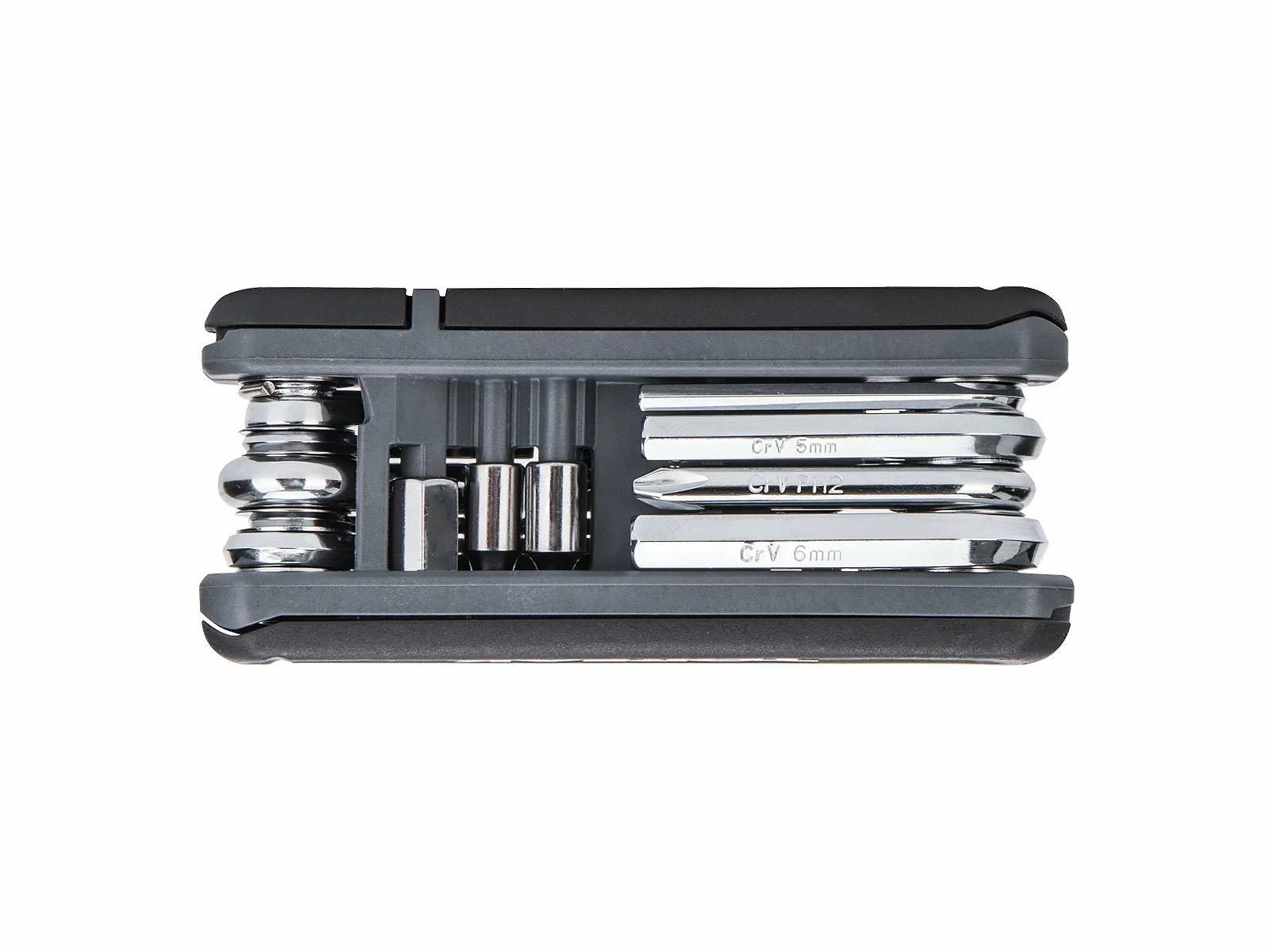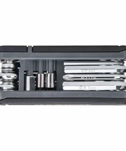 #2 Phillips skruetrækker, 14G / 15G nippel-nøgle, en tredje hånd, 2 dækjern, Presta Core Tool og CrMo kædeværktøj.