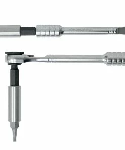 Bits kan monteres i begge ender, så du kan vælge at bruge nøglen som skruetrækker, eller almindelig skraldenøgle.
