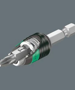Den medfølgende rapidaptor holder er selvlåsende og magnetisk. Den gør det let både at få bitsene ind og ud af holderen igen.