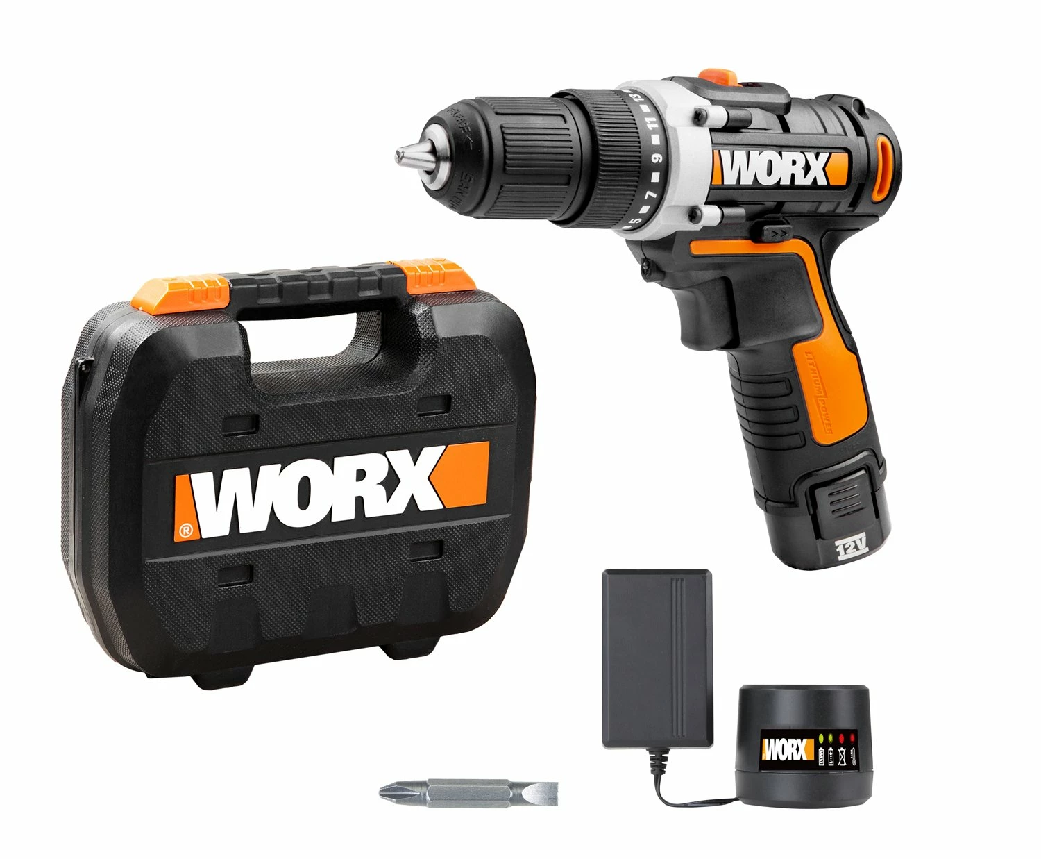Der medfølger 12V 2Ah batteri og lader samt en dobbeltsidet bit med stjerne og lige kærv.